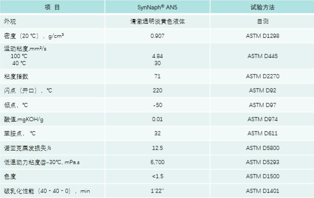 SynNaph® AN5烷基萘基礎(chǔ)油是API第V類基礎(chǔ)油,具有極好的熱氧化穩(wěn)定性,適用于調(diào)配極端條件下的潤(rùn)滑油。