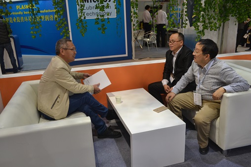 納克潤滑技術(shù)工程師同前來咨詢的客戶洽談