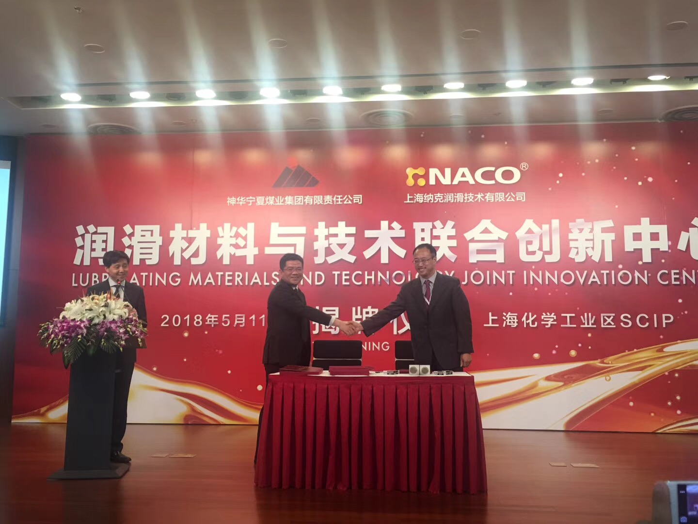 2018年5月11日,上海納克潤滑技術有限公司和神華寧夏煤業集團有限責任公司在上?;瘜W工業區園區共同成立“潤滑材料與技術聯合創新中心”。上?;^管委會主任馬靜、副主任侯金花、上海化工區發展有限公司總經理張淳、神寧集團監事會主席吳漢寶、上海納克董事長陳海昌、上海市潤滑油品行業協會、寧夏能源協會、中石化、中石油、寶鋼、馬石油領導以及眾多經銷商和媒體出席了此次聯創中心揭牌儀式。吳漢寶主席、陳海昌董事長、馬靜主任分別致辭。